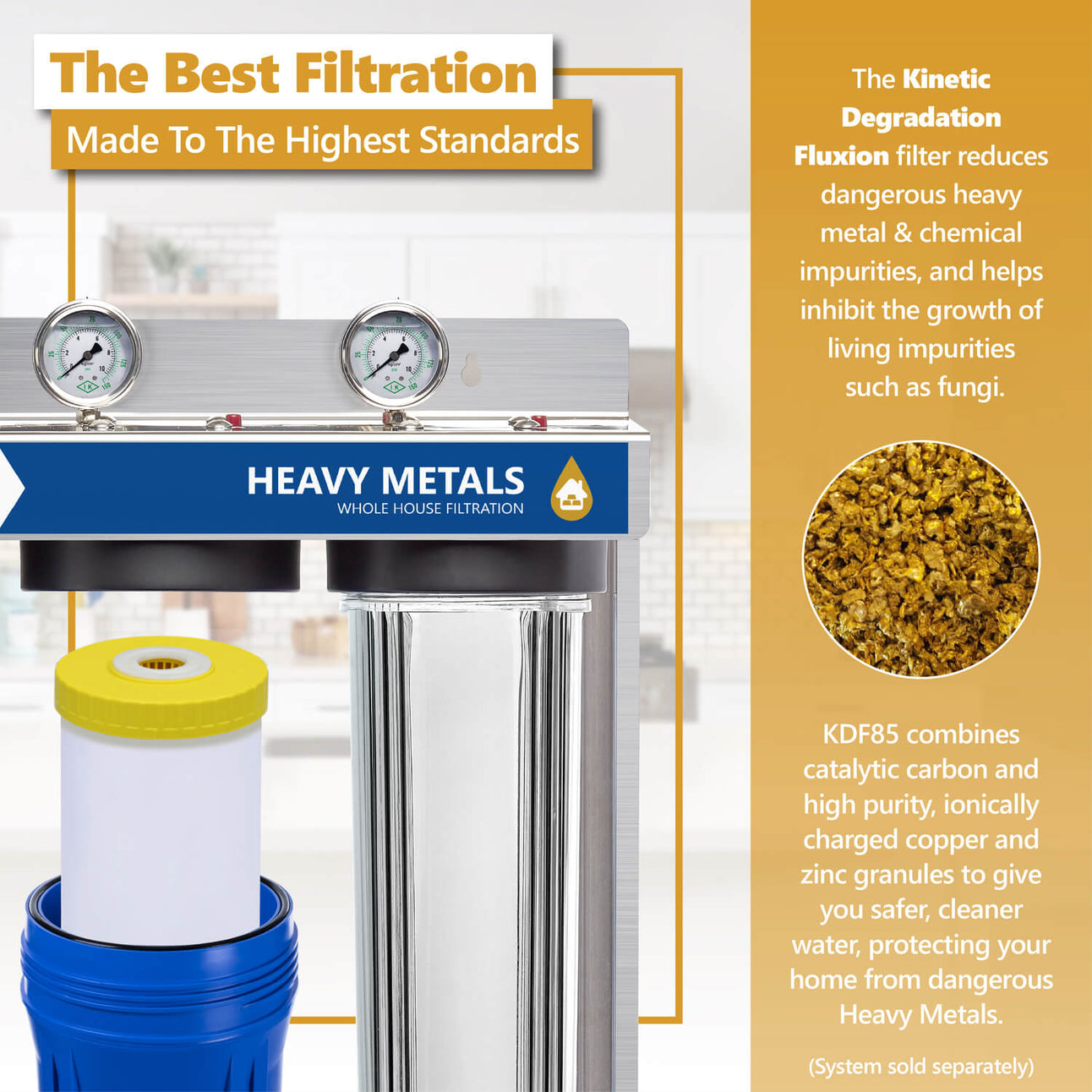 Heavy Metal Water Filter: Protect your home from heavy metals while improving the quality and taste of your water. Reduce Heavy Metals, Iron, Lead, Nickel, Chromium and more through the combination of catalytic carbon and high purity ionically charged copper and zinc granules.