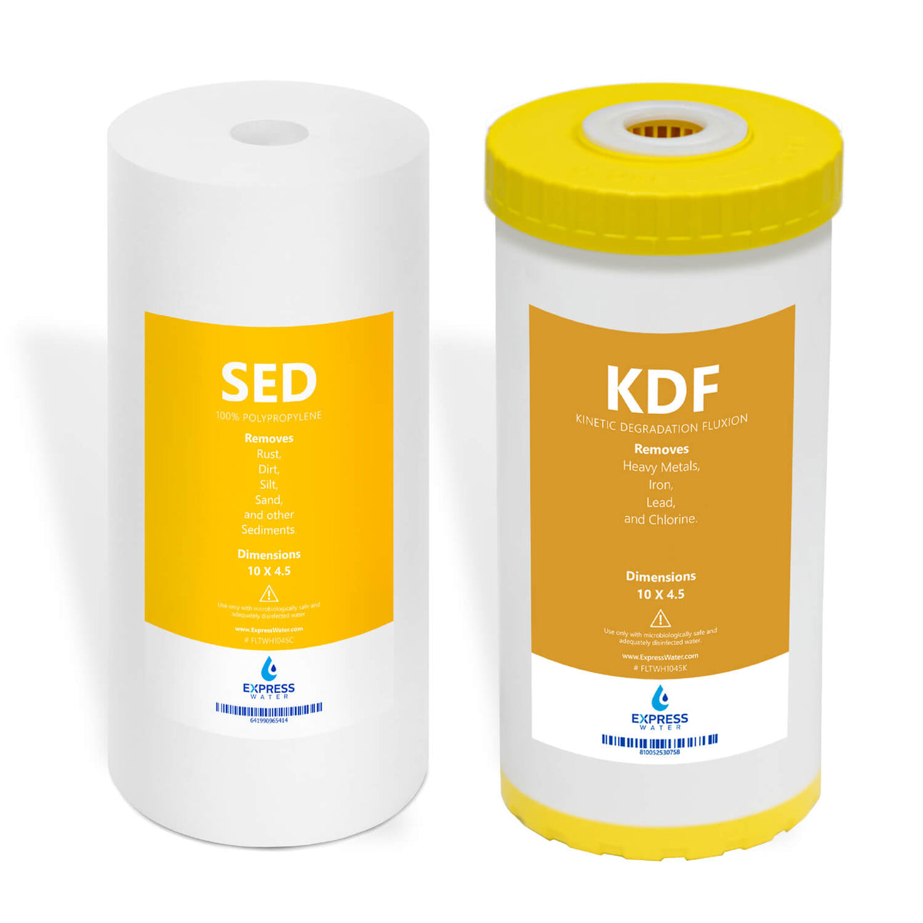 Protect your home, health, and appliances by filtering your water. The Express Water Whole House Sediment and KDF filter set removes major contaminants from your water supply and provides clean water for drinking, showering, cooking, and other home uses. The SED removes sediment contaminants like Rust, Dirt, Sand, Silt, Dust, and Scale. The KDF removes major water contaminants like Heavy Metals, Iron, Lead, Nickel, Chromium and more.
